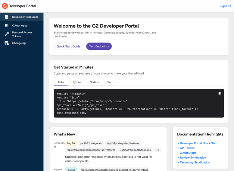 We’re focused on creating a frictionless, value-driven experience that helps our partners grow. Our new ELG program offers a framework for building that ecosystem together. As part of this program, we’re also launching our Developer Portal, your central hub for testing and building integrations. Through the portal, partners can access our API endpoints. These provide comprehensive software datasets, including reviews, ratings, market trends, and buyer intelligence to power innovative solutions across industries.